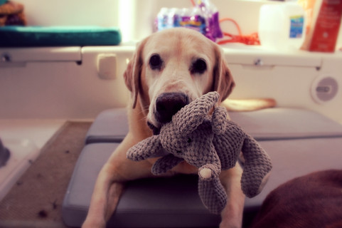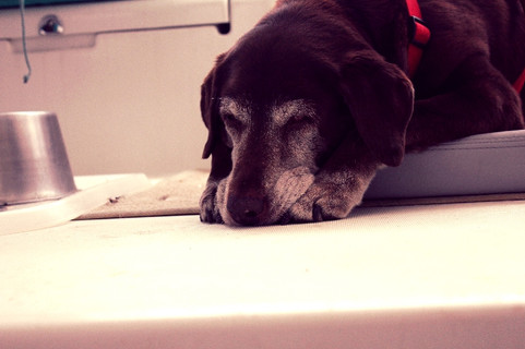 Meanwhile, while we were busy measuring…re-measuring… cutting and sewing, the dogs assumed their typical supervisory post. I had just bought them new toys after Corona shredded the last one all over the salon floor. She sure is territorial about her toys! I bought one for each and Corona immediately proceeded to slobber over them both, effectively marking them hers. Every time I grabbed the one she was playing with to give it to Yingling, she would get all frantic and grab it back as if to say “But, Mom, that one’s my favorite!”.