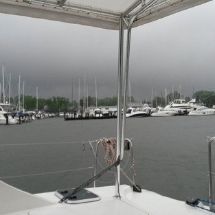 Then the weather forecast started to go bad. Very bad. Friday morning we woke up to torrential downpours, flash flood alerts and small craft advisories. The tide was so high, water was almost covering the piers at our marina. There were huge rolling waves coming in from the bay that spouted up like geysers thru the pier. We had to time the waves just right and run down the pier to avoid getting soaked.