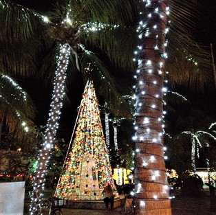 The whole town is all dolled up for Christmas at this point. On the one hand, it's really neat to be somewhere warm for the holidays. It feels so exotic. Not as traditional. On the other, it IS a bit weird listing to Bing Crosby's White Christmas when it's 85 degrees outside. Not bad. Just odd.
