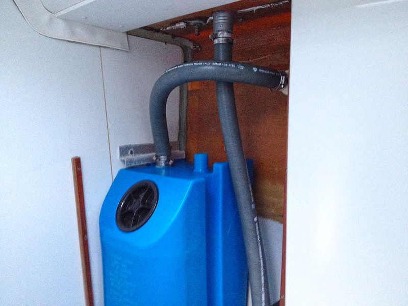 Matt’s started on the plumbing. He was on a roll until he ran out of hose and had to run out to – you guessed it! – West Marine. That’ll be here tomorrow so we can finish hooking everything back up. We upgraded to the thick black sanitation piping for our head hoses. We flush with freshwater to begin with, but the original 14 year old hoses had started to deteriorate and the smell was permeating through the hoses. By replacing the hoses (and continuing to flush with fresh water) there is absolutely NO MORE POO SMELL! Totally worth the upgrade.